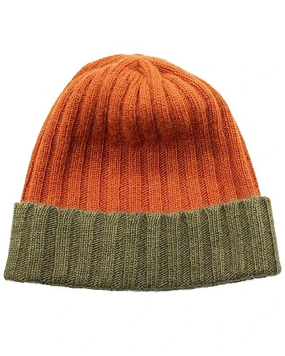- Contrast Color Folded Cuff Ribbed Wool & Cashmere-Blend Hat in rust/olive