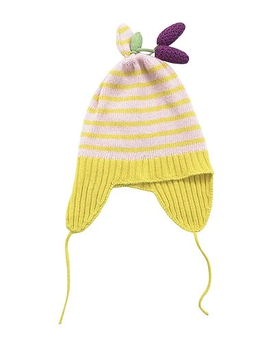 - Striped Earflap Wool & Cashmere-Blend Hat in baby pink/tweety bird yellow